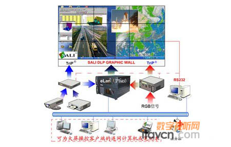其 C/S 結構模式使得與主控機連網的所有計算機用戶均可以成為大屏的操控用戶,只需簡單地在所使用的網絡終端上安裝相應的客戶端軟件,不用對用戶終端計算機做任何的改動,用戶使用本地的計算機就可以完成所授權的大屏操控功能,同時在本地計算機上能準確地顯示大屏信號顯示窗口布局和顯示內容。