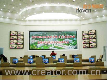 結合本指揮中心的具體使用情況,根據計算機信號和視頻信號以及相互交錯式的顯示,本方案中主要運用CREATOR快捷的ST-7100C無線畫中畫觸摸屏作為主要控制終端,輔用LTX-1200C有線畫中畫觸摸屏;配備CREATOR快捷的CR-PGMII可編程中控主機作為整個控制系統的核心;使用CREATOR快捷的RGB1616、VIDEO1616矩陣切換器進行音/視頻信號的相互切換;采用CREATOR快捷的GP-1000圖形拼接處理器用2臺背投投影機拼接作為顯示終端。