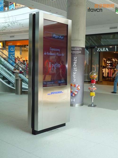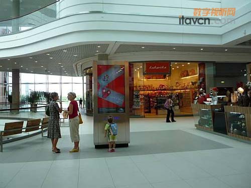 在馬耳他購物中心的主要區域,游客可以看到TK-3 SpotScreen的6臺雙面63英寸的視頻屏幕立式數字告示。