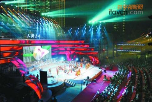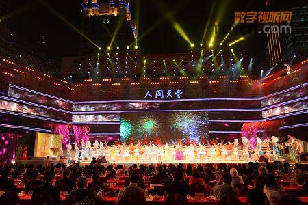 江暉路沿線還進行了滾燈、火龍、扇舞、腰鼓、動漫方陣和彩車大巡游;舞臺的設(shè)計也比以往更加現(xiàn)代,U形的大舞臺中間設(shè)一塊巨大的數(shù)字標牌彩屏,舞臺上方被大小不等的彩屏包圍,8片花瓣狀的LED屏幕分別點綴在舞臺兩側(cè),中央的LED長17米,寬6米,是目前為止,西博會開幕式使用過的最大數(shù)字標牌屏幕。1200個由激光燈、電腦燈組成的立體燈光,與彩屏配合,變幻出鮮花、西湖山水、杭州街景等各種造型,懸空的400多平方米數(shù)字標牌彩屏,將舞臺效果無限延伸,現(xiàn)場還布設(shè)了30組頂級音響……
