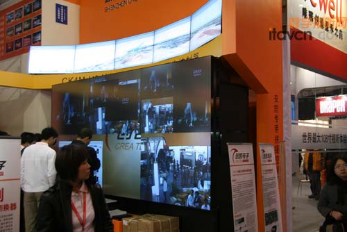 進(jìn)入創(chuàng)凱展位,首先映入眼簾的是CK8H全高清數(shù)字信號分割圖像控制器, CK8H全數(shù)字高清效果,支持多路HDMI(帶HDCP)輸入1080P信號實(shí)時(shí)動態(tài)分割處理,HDMI 1080P輸出。全高清信號處理設(shè)備,隨著全高清會議、視頻監(jiān)控系統(tǒng)的普及正在成為圖像處理領(lǐng)域必須被攻破的難關(guān)。據(jù)創(chuàng)凱介紹,全高清信號條件下,處理器每秒鐘的數(shù)據(jù)流量成倍增長,如何在保障畫面質(zhì)量的同時(shí)保障處理速度的流暢成為了成功架構(gòu)一款優(yōu)秀全高清圖像處理控制產(chǎn)品的關(guān)鍵。創(chuàng)凱依靠多年的技術(shù)積累,成功結(jié)局了眾多技術(shù)難題,退出了這款完全面向高端全高清應(yīng)用的產(chǎn)品。