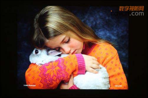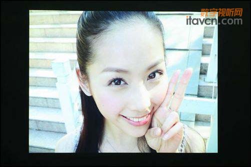 從上圖看到人物膚色比較自然,但由于亮度較高的關(guān)系,圖片顯得泛白,前面在色彩過渡測(cè)試中,日立HCP-4000X淺藍(lán)色過渡出現(xiàn)小許色彩斷層現(xiàn)象,在上圖背景和模特額頭部位色彩有點(diǎn)不準(zhǔn)。