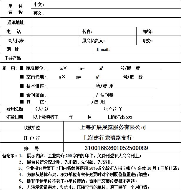 地址:上海市龍漕路51弄2號銀星大廈904室 參展單位:(公章)