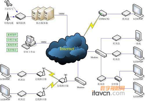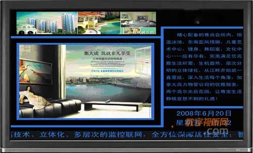 多媒體信息發布系統包括液晶營銷子系統,多媒體信息發布系統展示子系統,液晶海報等子系統,組合電視、圖片、網頁、滾動字幕等的節目,從中心通過網絡傳輸到傳到連鎖店、門店、客戶體驗廳等現場的液晶電視等顯示終端,可以在中心集中管理,也可以在銷售現場在授權下管理。