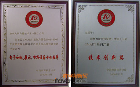 本次由中國教育技術(shù)協(xié)會主辦的“第五屆全國電教產(chǎn)品十佳品牌評選”活動,云集了全國各省市多家教育技術(shù)類雜志的資深編輯和專家、眾多教育機構(gòu)和個人參與投票評選,共歷時5個月,采用報紙、展會、網(wǎng)絡(luò)3種渠道進行調(diào)查問卷的發(fā)放,收集和甄選。憑借強大的產(chǎn)品優(yōu)勢和雄厚的技術(shù)實力在評比中表現(xiàn)突出,SMART獲得“技術(shù)創(chuàng)新獎”和“電子白板、展示、書寫設(shè)備十佳品牌”兩項大獎。