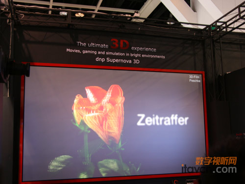 在展會現(xiàn)場,丹麥DNP展示了其強光屏幕無限拼接投影幕是標(biāo)準(zhǔn)組件屏幕系統(tǒng),此系統(tǒng)可以組合任何數(shù)量的強光屏幕,打造超大尺寸的視覺體驗。通過特制的鋁制框架將多個強光屏幕組合在一起。Supernova Infinity技術(shù)革命性地實現(xiàn)了將強光屏幕Supernova構(gòu)建為沒有任何尺寸限制的大屏幕顯示墻,并且仍然具有強光屏幕Supernova的技術(shù)特性。強光無限拼接屏幕Supernova Infinity以超大尺寸與出眾的超清晰圖像品質(zhì),無論距離多遠,位置多偏。在此次展會中,DNP主要演示其3D功能,吸引住大批觀眾的眼球。