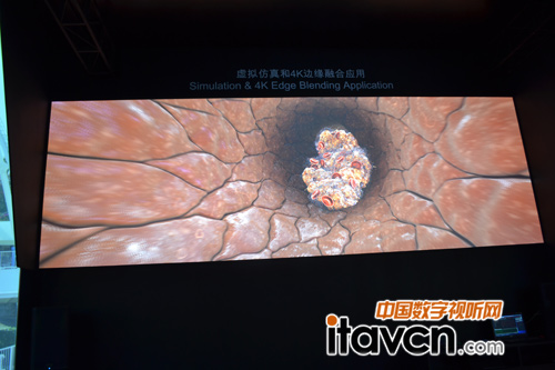 為全面展示索尼激光光源投影機在復雜角度安裝方面的優勢,索尼本次特別展示了高達5米的縱向弧幕投影。此系統采用3臺VPL-F420HZ投影機,分別從三個不同角度進行投射。借助投影機自由角度安裝特點,加之邊緣融合處理功能,使得復雜的安裝應用得以輕松實現。憑借此類應用,索尼激光光源投影機可為櫥窗展示、模擬仿真等行業提供更多創意性解決方案,使項目策劃人員的思路得到解放與突破。