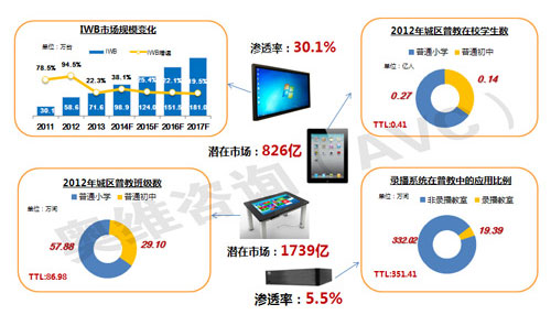 截至2013年,交互電子白板(IWB)在教育市場中的滲透率已達30.1%,未來幾年增速仍將穩定在20%左右。