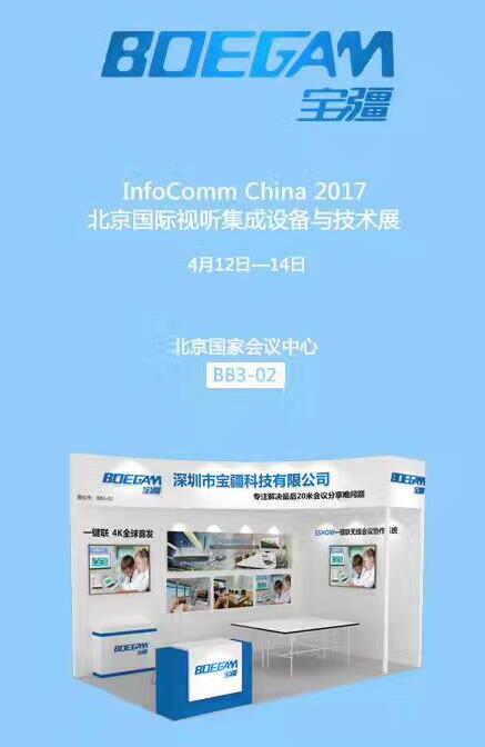 【中國數(shù)字視聽網(wǎng)訊】2017年4月12-14日第12屆北京國際視聽集成設(shè)備與技術(shù)展覽會(huì)—Infocomm China 2017將在北京國家會(huì)議中心盛大舉行,作為國內(nèi)最具權(quán)威和影響力的行業(yè)展會(huì),Infocomm China擁有高品質(zhì)的專業(yè)視聽買家和最終用戶群體,本屆展會(huì)展覽面積達(dá)60000平方米,吸引了超過300家來自于中國及海外的參展商,涵蓋了全球?qū)I(yè)視聽信息技術(shù)品牌,將吸引來自政府、金融、交通、教育、安防等各行各業(yè)的參展觀眾。深圳寶疆科技有限公司將攜一鍵聯(lián)無線解決方案震撼亮相B館B3-02展位,恭候您的駕臨。