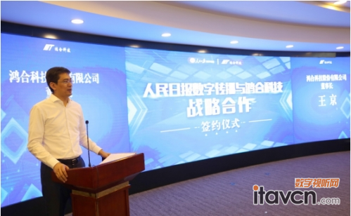 【人民日?qǐng)?bào)數(shù)字傳播董事長兼總經(jīng)理徐濤與鴻合科技董事長王京簽署戰(zhàn)略合作】