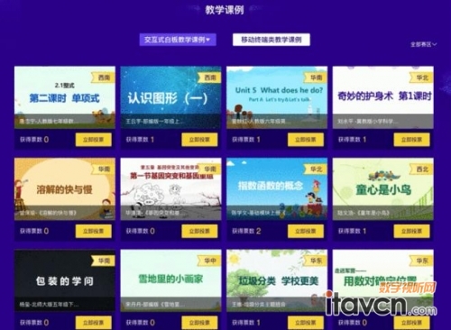 看課滿2分鐘之后即可投票。凡對【交互式白板教學課例】與【移動終端類教學課例】作品進行投票的老師,即可獲取作品對應課件。