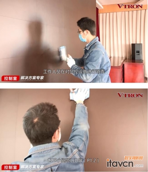 以下為工程人員為廣東省衛(wèi)健委疫情防控指揮中心COB顯示系統(tǒng)進行消毒情況:
