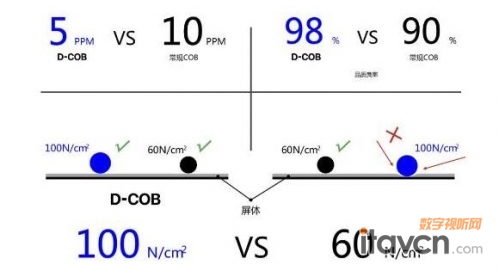 用環氧樹脂膠封裝固化,表面平滑無縫隙,解決了產品耐候性、防磕碰等問題。在對環境的適應性上,D-COB具有防潮、防靜電、防磕碰、防塵等功能,解決了超小間距LED顯示屏易損壞、維護性差等問題。在多個方面彌補了SMD小間距顯示屏的不足,擁有更高的穩定性及可靠性,同時具備防潮、耐磨、抗靜電、易清潔、高效散熱等特點。