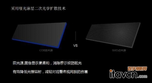 面域式封裝技術,燈點表面凸起成球面,做到無像素顆粒感,光滑而堅硬,耐撞耐磨,也使LED模組發光均勻,提升產品的視角,有效消除摩爾紋,提高對比度,降低強光輻射,降低炫光及剌目感,適合近距離、遠距離觀看,不易產生視覺疲勞,是指揮中心、會議場所、私人影院、教育領域等的解決方案。