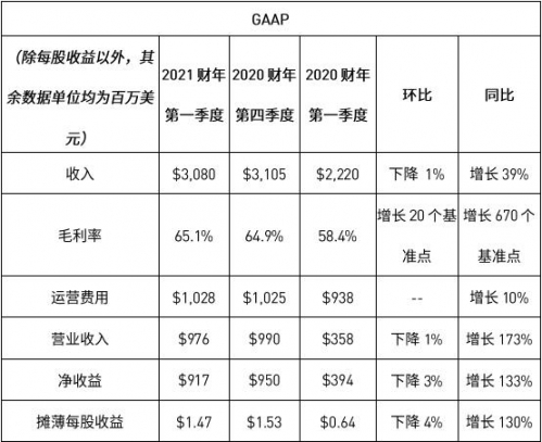 【數字視聽網訊】收入達30.8億美元,較去年同期增長39%