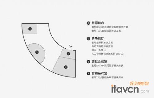 “多功能廳”是索尼商業解決方案體驗中心中最重要的展廳,匯集索尼黑科技“增強分析單元”,音頻產品“自動聲向追蹤麥克風”,索尼激光投影機寬幅融拼等產品,為大型會議、報告、培訓等提供專業音視頻解決方案,打造擁有多應用場景的功能廳。