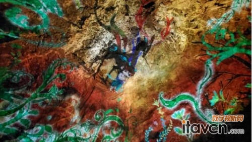 超凡的視覺效果投影在溶洞內(nèi)主洞的巨大穹頂上
