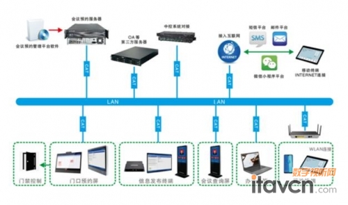 公信智能會(huì)議預(yù)約系統(tǒng)由會(huì)議預(yù)約服務(wù)器、會(huì)議預(yù)約一體機(jī)、會(huì)議信息發(fā)布一體機(jī)、會(huì)議信息發(fā)布終端、會(huì)議預(yù)約管理平臺(tái)軟件、會(huì)議預(yù)約終端軟件、會(huì)議信息發(fā)布終端軟件、交換機(jī)組成,系統(tǒng)各設(shè)備通過(guò)交換機(jī)進(jìn)行網(wǎng)絡(luò)連接,通過(guò)對(duì)多個(gè)會(huì)議室進(jìn)行集中控制,集中管理,實(shí)現(xiàn)會(huì)議室資源的電子化、規(guī)范化,從而提高會(huì)議室的使用效率。