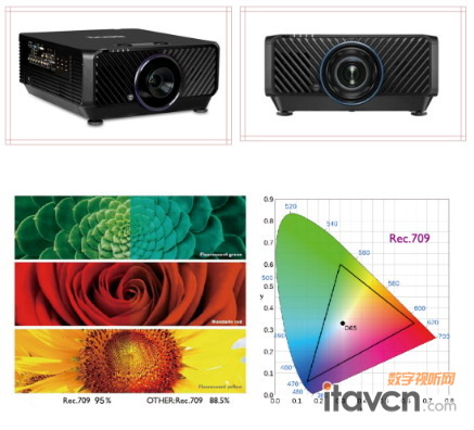作為此項目投影產品供應商,聯承一直深耕顯示行業,通過繽紛影像為客戶呈現著精彩視界。本次布展使用了明基NP65DB、K9423廣色域激光工程投影機。其高亮度輸出適合各種大型場館,即使在明亮的環境照明下,也能提供出眾的觀賞體驗。藍核激光引擎通過雙色輪系統顯著提高了色彩還原性,該產品覆蓋Rec.709色域范圍高達95%。Rec.709色域標準是國際電信聯盟(ITU)于1990年制定的標準,經過這一色彩標準校正過的明基工程投影新品系列,在投影過程中具備高動態、高像素、真實色彩還原等特點。