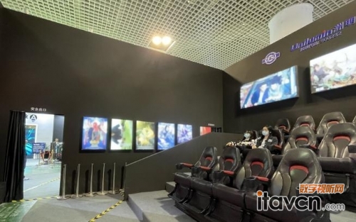 展位后部則是采用洲明紅點精品小間距——UHPⅡ顯示大屏、中影4D座椅系統共同打造的迷你電影放映廳。大屏完整還原了影片的真實細節和色彩,4D座椅系統則結合影片內容打造晃動、閃電颶風等特效場景,讓觀影人員身臨其境感受大片的震撼與刺激。