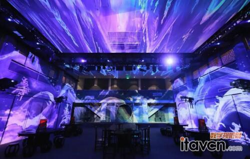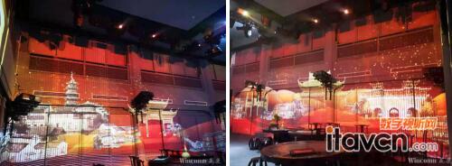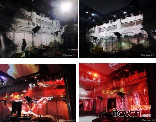 該演出空間的投影介質非常多樣,天花、墻體、窗戶、樓閣等多種場景都涉及到投影,不同的成像介質,對投影要求極高,專業演出又對投影畫面有著近乎苛刻的一致性要求,要求圖像清晰銳利,始終如一,投影畫面需要保持高度的一致性。