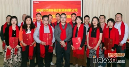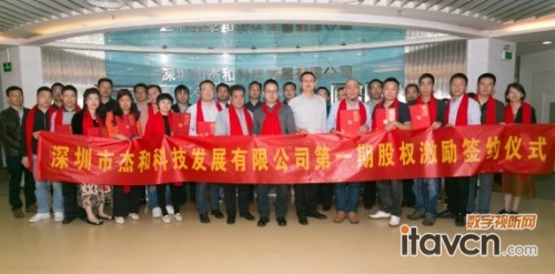 【數(shù)字視聽網(wǎng)訊】2021年2月26日下午,杰和科技隆重舉行了第一期股權(quán)激勵(lì)簽約儀式。杰和科技及東莞杰拓的一級、二級部門長,股權(quán)激勵(lì)對象等相聚一堂,共同見證了公司的這一重要時(shí)刻。此次簽約共有16名具有一定服務(wù)年限,并且為企業(yè)發(fā)展做出重要貢獻(xiàn)的中高層領(lǐng)導(dǎo)、核心骨干、優(yōu)秀員工等簽署股權(quán)協(xié)議,正式成為杰和科技股東。