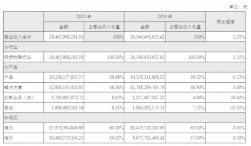 但從報告數據來看,大華股份2020年在海外的收入達到105億元,占全年營收近40%,而且同比增長8.38%,不過國內的收入卻同比減少3%。因此,海外收入影響并不大。