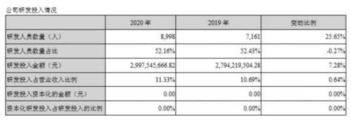 大華股份的研發人員數量達到近9千人,研發人員數量占比達到52%。