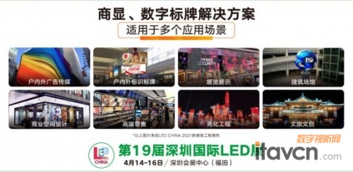 【數字視聽網訊】第19屆深圳國際LED展(LED CHINA 2021)將于4月14-16日,于深圳會展中心(福田)拉開帷幕。預計超1,200個參展品牌,40多場高端會議,將帶您深入了解當下數字標識及商業顯示的最新趨勢。在數字化時代,有何新品科技能使商業空間重塑升級?如何更好利用商業設計、數字服務、智能體驗等進行視覺營銷提升訪客體驗?一切盡在LED CHINA 2021! 行業觀眾可提前注冊,免費進場參觀,體驗行業年度科技盛宴。(注冊通道:https://dwz.cn/jg96mSoj)