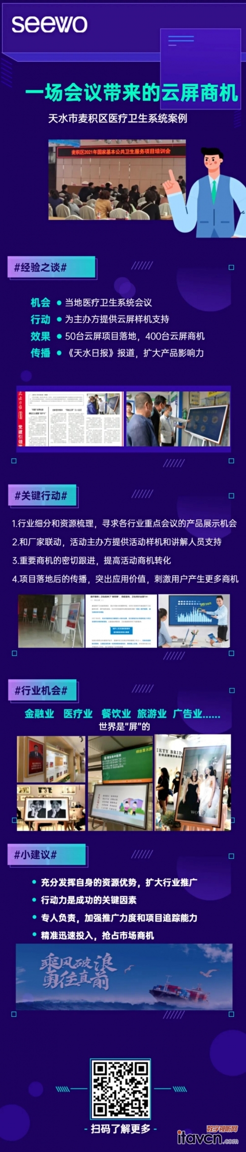 隨后,希沃屏顯事業部王濤,為各位合作伙伴分享了入校推廣的優秀案例“一場會議帶來的云屏商機”。