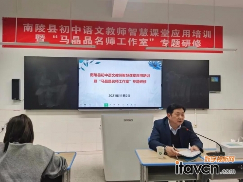 【數字視聽網訊】為持續推進信息技術與教育教學的深度融合,進一步提升教師運用現代教育手段進行教學的能力,啟發教師關于實施教學改革的思考和探索,促進信息技術與語文學科的深度融合,讓初中語文課堂教學“減負提質”,2021年11月2日,南陵縣初中語文教師智慧課堂應用培訓暨“馬晶晶名師工作室”研修活動在南陵縣城東實驗學校順利舉行。