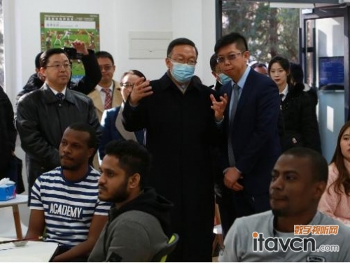 啟動(dòng)儀式后,田學(xué)軍副部長(zhǎng)及相關(guān)領(lǐng)導(dǎo)在希沃副總裁崔劍的陪同下,共同參觀了由希沃互動(dòng)錄播支持的北京語(yǔ)言大學(xué)留學(xué)生漢語(yǔ)雙師課堂。課堂上,北京語(yǔ)言大學(xué)的授課教師靈活應(yīng)用希沃白板5和希沃互動(dòng)錄播設(shè)備,為在場(chǎng)學(xué)生講解《長(zhǎng)城漢語(yǔ)》第十單元《你到過(guò)北京嗎?》一課。輔以教育信息化設(shè)備的高效應(yīng)用,本教室及遠(yuǎn)程第二教室里逾30位留學(xué)生,和在場(chǎng)的來(lái)賓們一同感受了中華文化的繽紛之美。