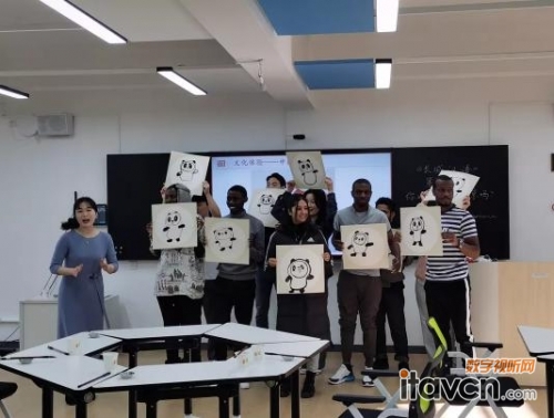 精彩不止于此。除了語(yǔ)言類(lèi)教學(xué)以外,授課教師還通過(guò)希沃互動(dòng)錄播、希沃白板5進(jìn)行現(xiàn)場(chǎng)的互聯(lián)共創(chuàng),帶領(lǐng)留學(xué)生們進(jìn)一步學(xué)習(xí)國(guó)畫(huà)、音樂(lè)、舞蹈等文化精粹。課上,學(xué)生們手提毛筆,跟隨老師在屏幕上的指引,畫(huà)出了一只只憨態(tài)可掬的冬奧吉祥物——冰墩墩。