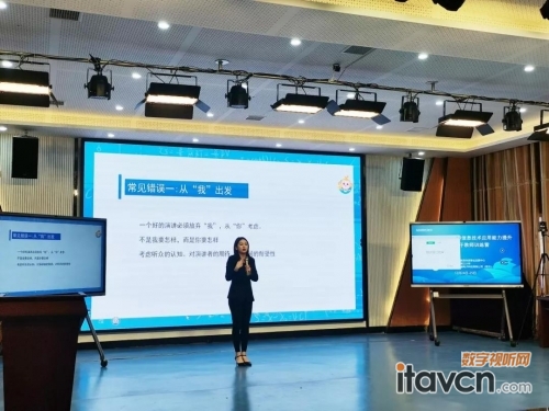 希沃劉珂君老師也帶來了《演講與公共表達》《希沃杏壇計劃》課程。在分享過程中,劉老師從日常老師們的上臺講課講到老師們參加賽課活動,以及無生模擬展示課要如何進行演講表達。這不僅讓老師們感受到演講的魅力,還讓老師們學到了可以使用的語言技巧。