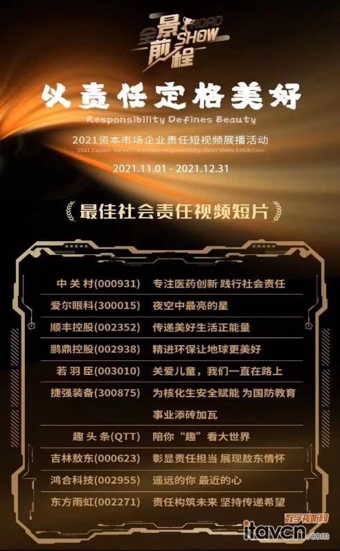 【數字視聽網訊】近日,鴻合科技公益短視頻作品《遙遠的你,最近的心》獲全景網2021年“景show前程活動”“最佳社會責任視頻短片”獎。