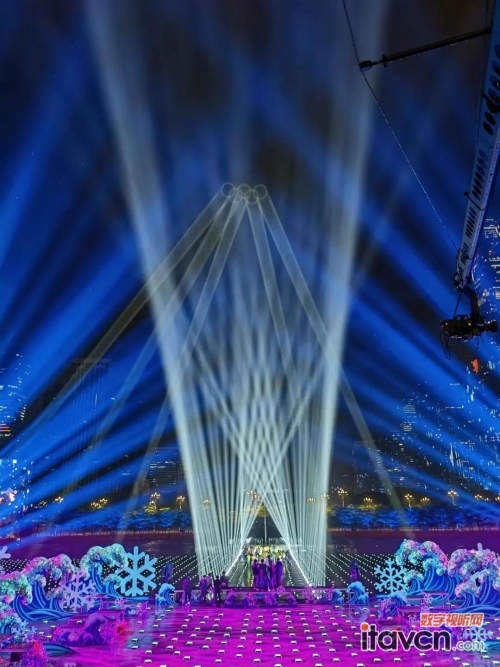 在光峰科技ALPD®激光技術加持下,四條耀眼的激光光柱沖上云霄,全球首次用激光在云上寫出“天下一家”四個大字,并在云端打出“五環”標志,為本屆冬奧會喝彩。