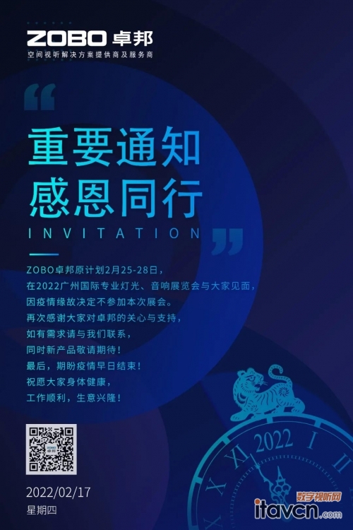 關于ZOBO卓邦取消2022廣州展覽會的重要通知: