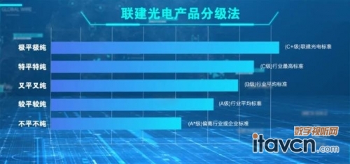 聯建光電自成立以來就嚴控品質,制定了《質量管理標準》,打造了432項品質標準,并不斷迭代。去年,品質團隊加速了自有檢測環節的創新,并創建了聯建光電產品品質分級法,從客戶最關注、最能感受到差別的平度、純度、可靠性等多個方面對產品進行了5個級別的劃分,C+為聯建光電最高標準且優于行業標準。