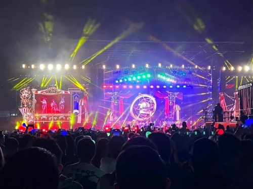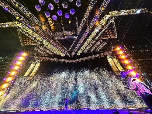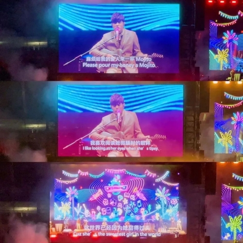 從2019年起,周杰倫演唱會一直沿用聯誠發的舞美創意LED顯示屏和熒光棒系列產品,本次悉尼站演唱會也不例外,使用了聯誠發600㎡龍騰禧LED透明屏和45000根愛心型熒光棒系列產品。本次舞美設計依然采用的是科技與藝術并存的周氏屋頂式結構,配合升降舞臺、威亞機械等技術,呈現動感活力、青春張揚的狂歡之夜。五彩斑斕的燈光裝置和高清亮麗的LED大屏將主舞臺包圍,觀眾從任意角度,皆能觀賞到周董及舞者的精彩表演以及歌舞升平、屏影飛動的壯觀場景。