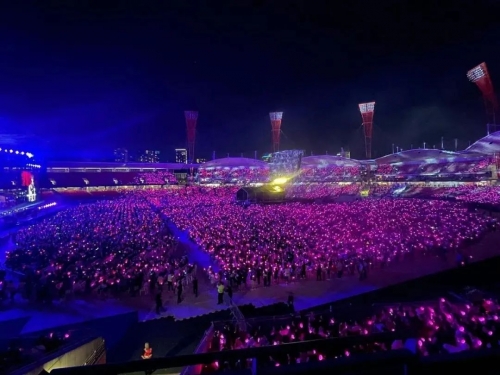 【數字視聽網訊】3月4日,2023周杰倫嘉年華世界巡回演唱會悉尼站在奧林匹克公園Giants Stadium隆重舉行。周董嗨唱整整三個小時,58首經典曲目,無數人心中的經典再次響起。聯誠發龍騰禧系列LED透明屏和熒光棒系列產品在演唱會現場大放異彩,以高端炫酷的舞臺視覺效果為來自世界各地的數萬名周杰倫歌迷帶來精彩絕倫的視聽盛宴。