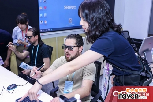 現場很多觀眾駐足體驗的產品還有希沃桌面VR交互一體機,通過情境化教學、體驗式學習、小組式探究和領悟等多種方式,讓教學過程更有趣、生動、高效,從而實現教學升級創新。