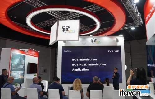 京東方科技集團股份有限公司的副總裁劉毅在15日于阿姆斯特丹召開的國際廣播電視大會上向訪客介紹產品。