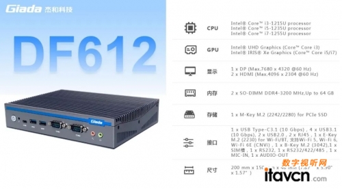 杰和科技,商用顯示硬件解決方案領導者,深耕商業顯示領域24年,業務遍布歐洲,美洲,東南亞和南非等60多個國家,服務超過3000名客戶,自有品牌 Giada 已成為歐洲數字標牌媒體播控器的領導品牌。在DF系列產品中,DF612作為一款全新的嵌入式計算機,搭載英特爾第12代Alder Lake處理器,具有突破性的技術、增強的圖形處理能力和豐富的I/O接口,廣泛應用于商業顯示、智能車載、安防領域和邊緣人工智能等場景。
