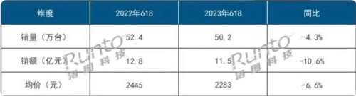 洛圖科技(RUNTO)數(shù)據(jù)顯示,2023年上半年中國大陸投影機市場出貨量為340.1萬臺,同比下降7.5%;剛剛過去的雙十一期間,中國智能投影線上公開零售渠道的銷量為 43.2 萬臺,同比下降 12.3%;銷額為 9.6 億元,同比下降 24.0%。洛圖科技預計,2023 年中國智能投影銷量將落回在 600 萬臺以內(nèi),市場規(guī)模的下滑基本已成定局。