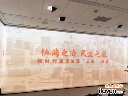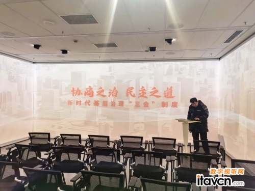沉浸式實訓教室是黃浦黨校的一大亮點,通過采用LED室內全彩屏、投影融合顯示系統、擴聲系統和可視化分布式系統,打造了一個高度沉浸感的視聽環境。日常會議時,由LED室內全彩屏、擴聲系統和可視化分布式系統組成的會議系統,為與會者提供了一個清晰、逼真、高效的會議體驗。當需要沉浸式體驗時,打開投影融合顯示系統,觀眾的視覺完全被包圍,再配合環繞立體聲系統,使參與者充分體驗一種高度身臨其境的三維立體視聽感受,獲得一個具有高度沉浸感的可視環境,參與者仿佛置身于一個真實的環境中,能夠更好地理解和體驗學習的內容。