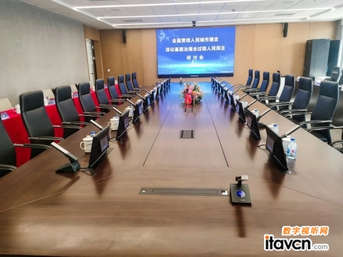 在5F多功能教室、6F教室、5F/6F實訓室、4F/5F/6F討論室以及12F領導會議室中,黃浦黨校采用了數字會議系統、擴聲系統、LCD智慧會議屏和可視化分布式系統。這些現代化的音視頻設備和技術,使得會議和培訓活動更加高效、便捷,同時保證了音視頻數據的準確性和安全性。