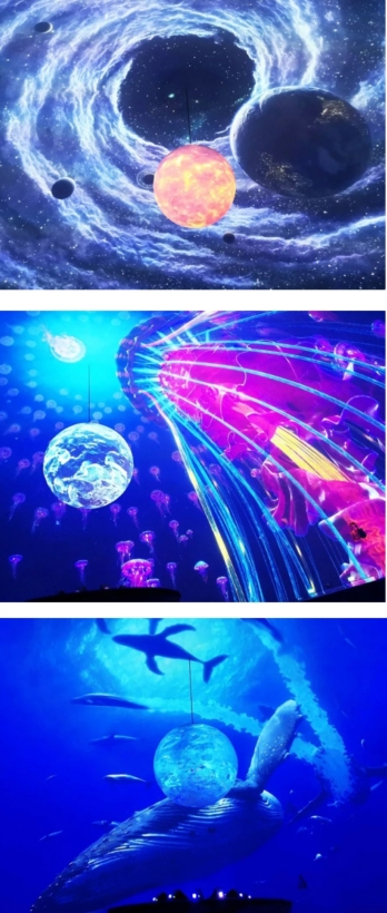 項目介紹:魔法海洋科技體驗館以“魔法海洋之書”為主題,通過使用球幕電影、立體聲等設(shè)備,為游客打造驚險、刺激、逼真、實境的震撼體驗。魔法海洋球幕直徑22米,占地380平米,單場承載可達300人。球幕影院內(nèi)的場景無論是神奇的魔法世界、靜謐的海底和高清3D影像,觀影感受都遠遠高于巨幕所帶來的體驗,讓觀者如身臨其境般的沉浸在豐富多彩的影像世界里。