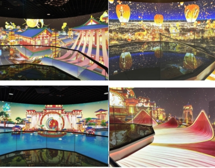 產(chǎn)品介紹:沉浸式環(huán)幕影院整體空間直徑12.5米,環(huán)幕高3.6米,地面環(huán)幕寬2.5米,贏康采用7thSense Infinity媒體服務器對視頻進行多通道融合及無損無壓縮播放,搭配十余臺科影達投影機與Alcorn播控系統(tǒng),共同打造了一個“國風”沉浸展廳。
