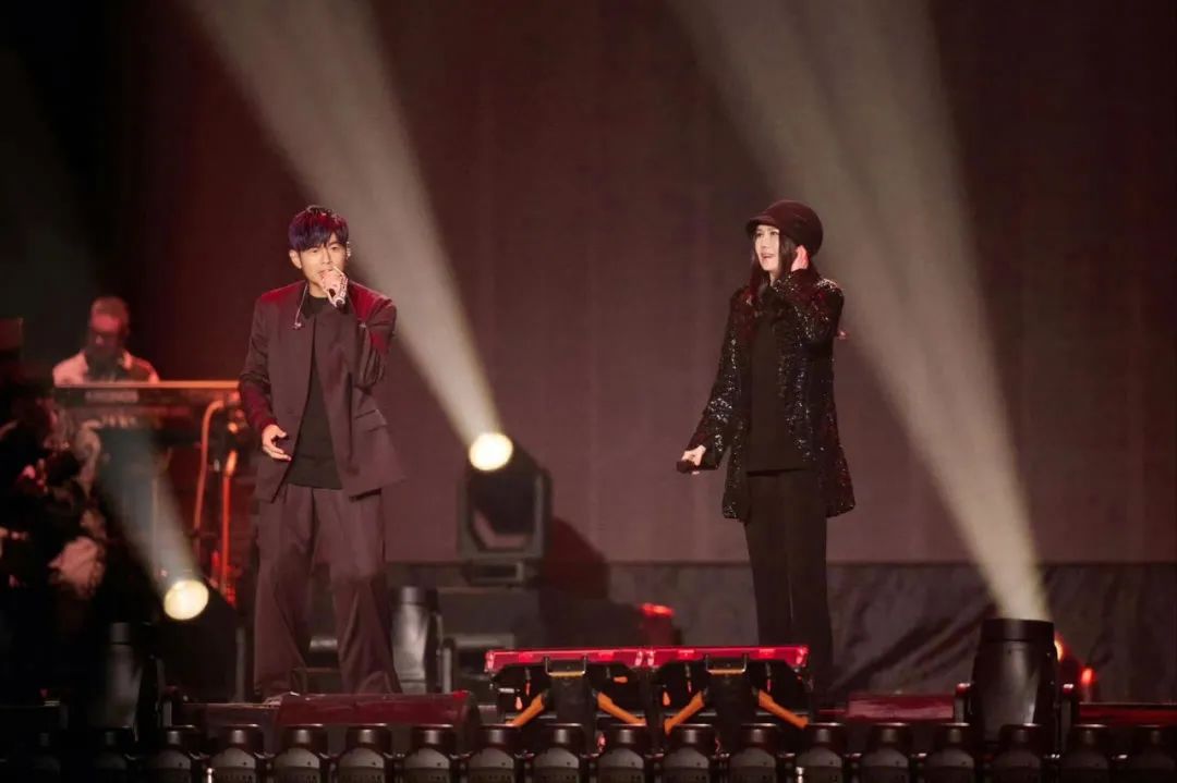 神秘嘉賓環(huán)節(jié),天后江蕙直接閃亮現(xiàn)身,二姐和周董共同演唱了《星晴》、《菊花臺》、《煙花易冷》等曲目,全場掀起高潮,歡呼聲、尖叫聲交織在一起,響徹整個場館。