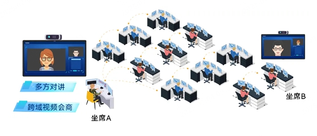 各級業務人員還可通過坐席終端發起跨坐席、跨層級、跨域、跨層級的音視頻呼叫,組建多方視頻會商。同時,可接入作業端的監控視頻,如設備監控攝像等,同步共享作業現場視頻、各類業務系統界面、會商資料等,實時編輯、修改,會商協作更高效,決策指令更精準。